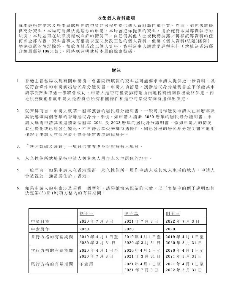 以下需要填写的申请表格(适用于中国内地与香港双边协定),可以看到填写内容中主要是香港居住、经营、受雇情况,不太涉及内地相关内容: