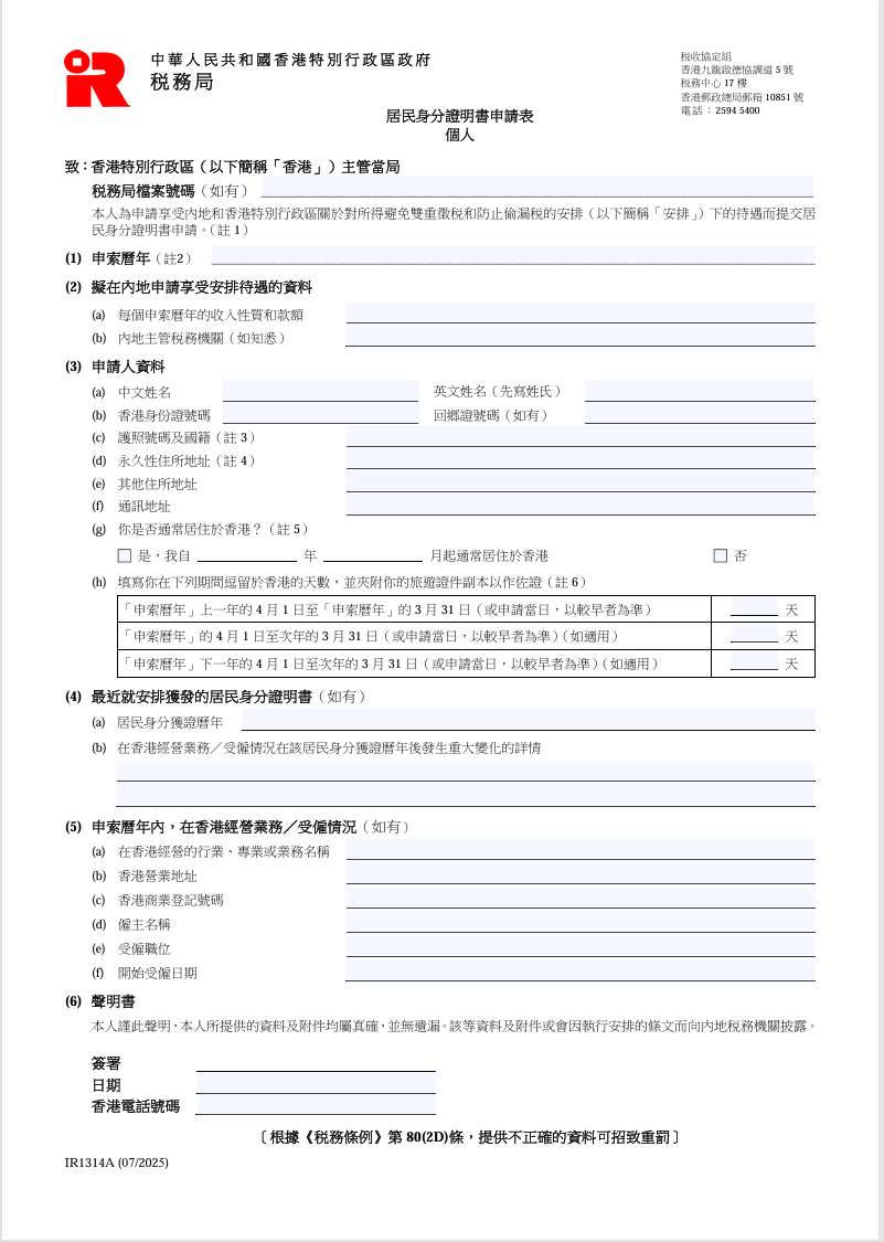 TRC 就是你在这一系列判定中,证明“在香港的税务居民身份”的重要凭证。